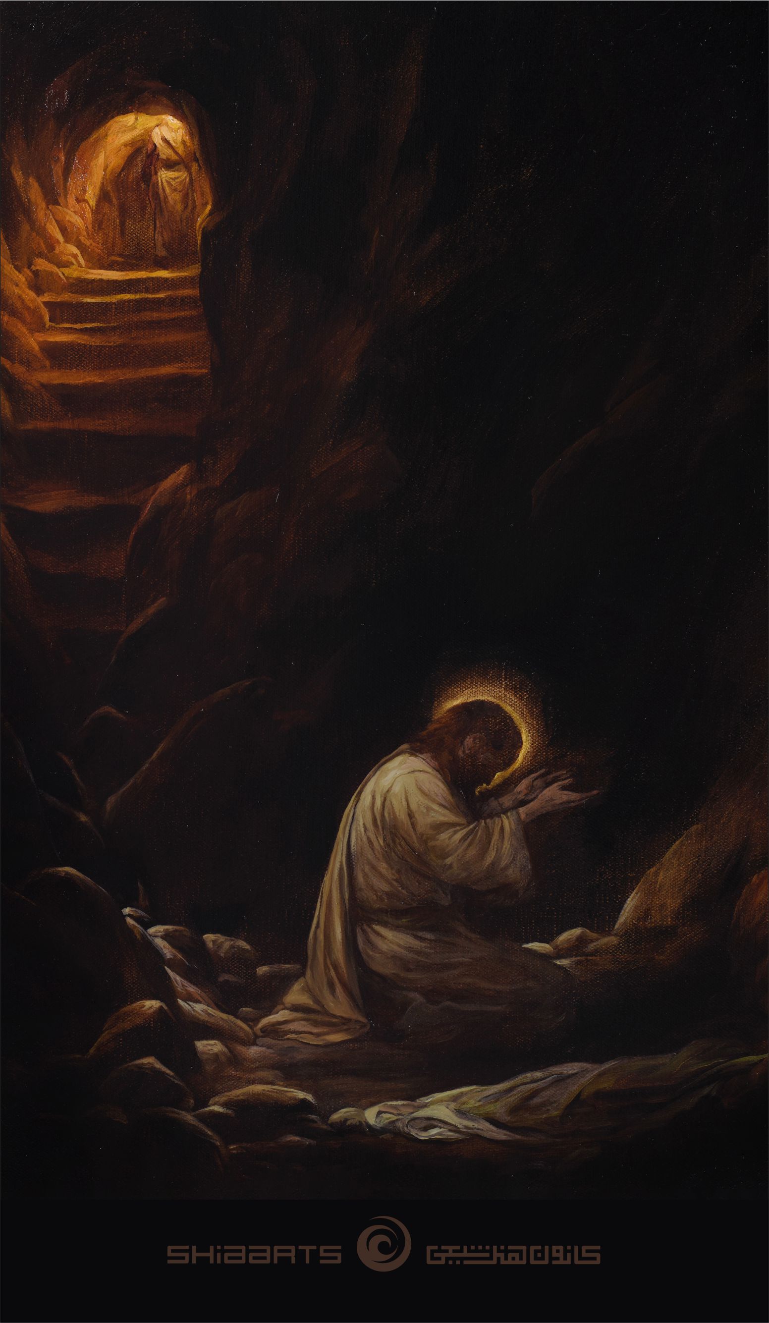 نقاشی رنگ و روغن روی بوم در وصف حضرت موسی بن جعفر (علیهما السلام) در زندان هارون