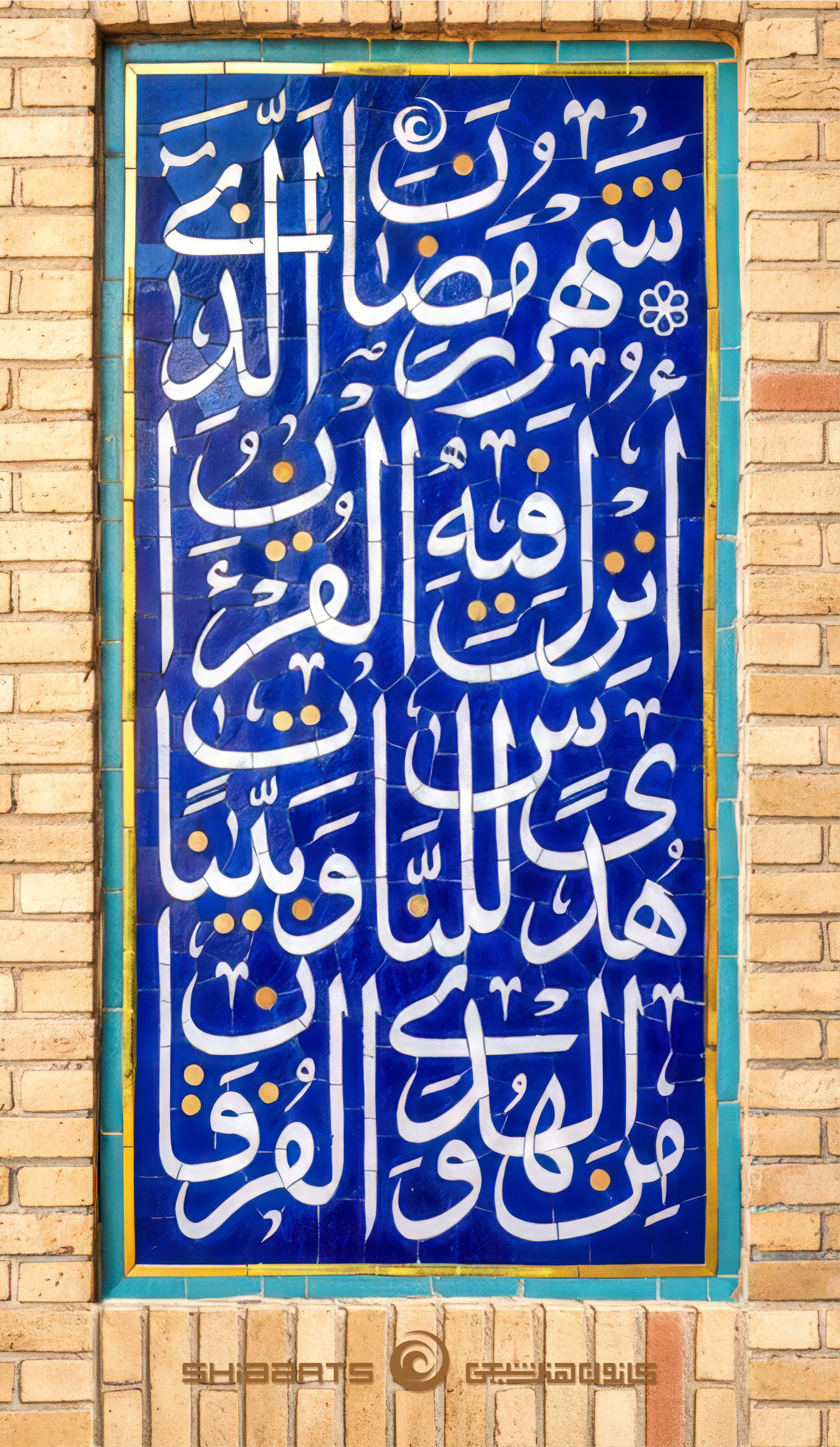 کتابت بخشی از آیه 185 از سورهی مبارکه بقره با تکنیک کاشی معرق و خط ثلث ایرانی