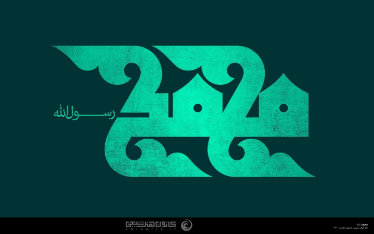 کتابت نام مبارک پیامبر اعظم، حضرت محمد مصطفی (صلی الله علیه و آله و سلّم) با خط کوفی تزئینی