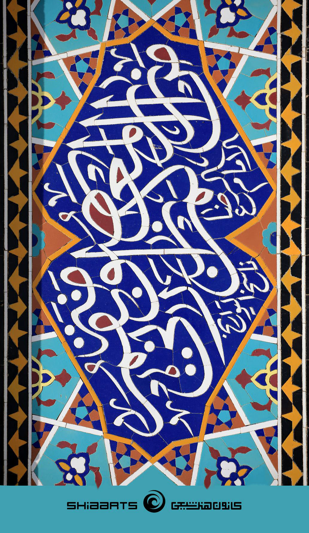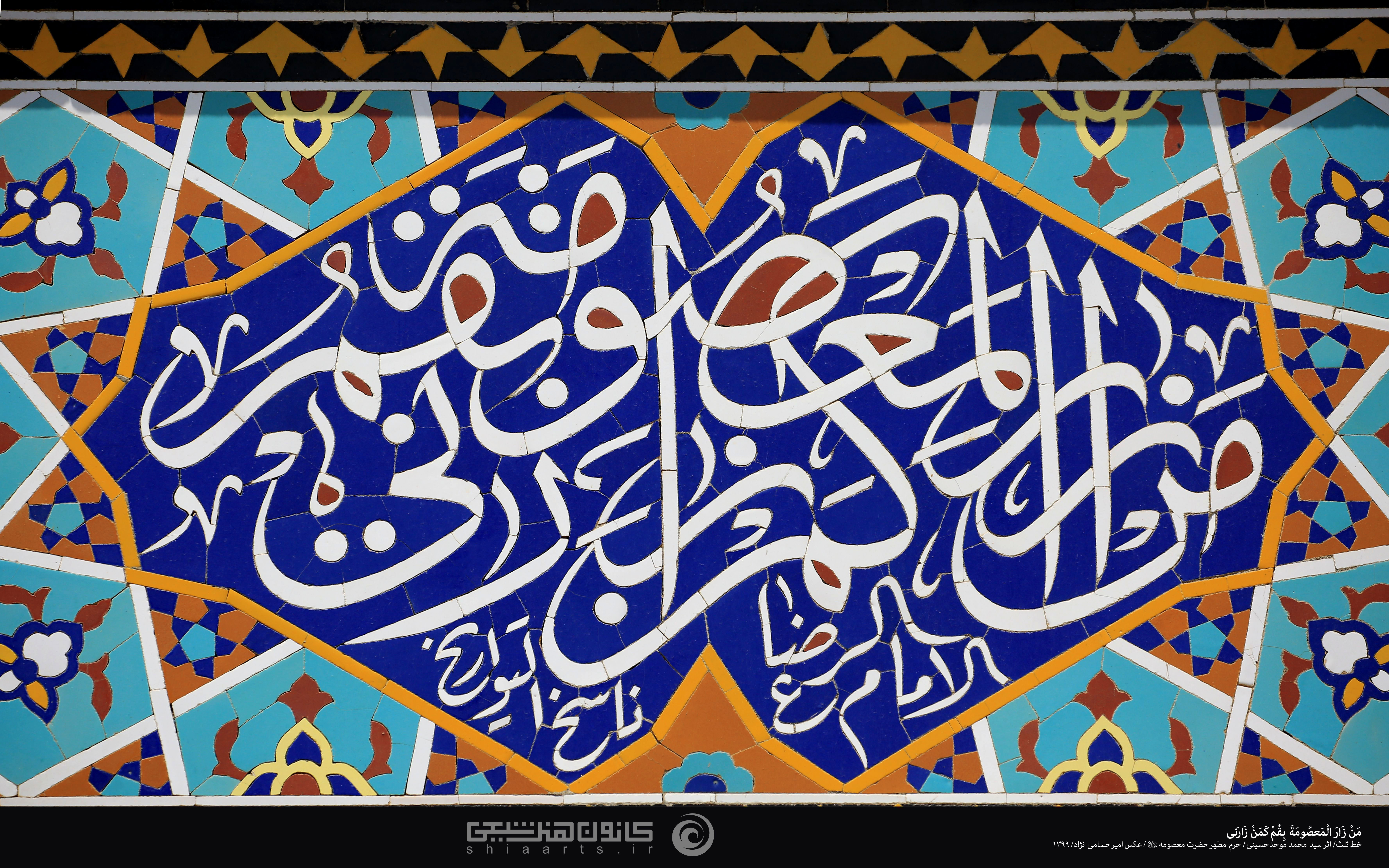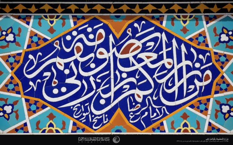 کاشیکاری حدیث مبارک که به خط ثلث کتاب شده و در حرم حضرت معصومه (سلام الله علیها) موجود است ـ عکاسی توسط آقای امیر حسامینژاد در سال 1399