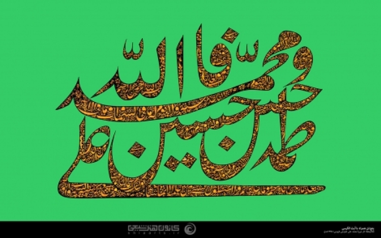 کتابت نام مبارک پنج تن (علیهمالسلام) همراه با آیت الکرسی